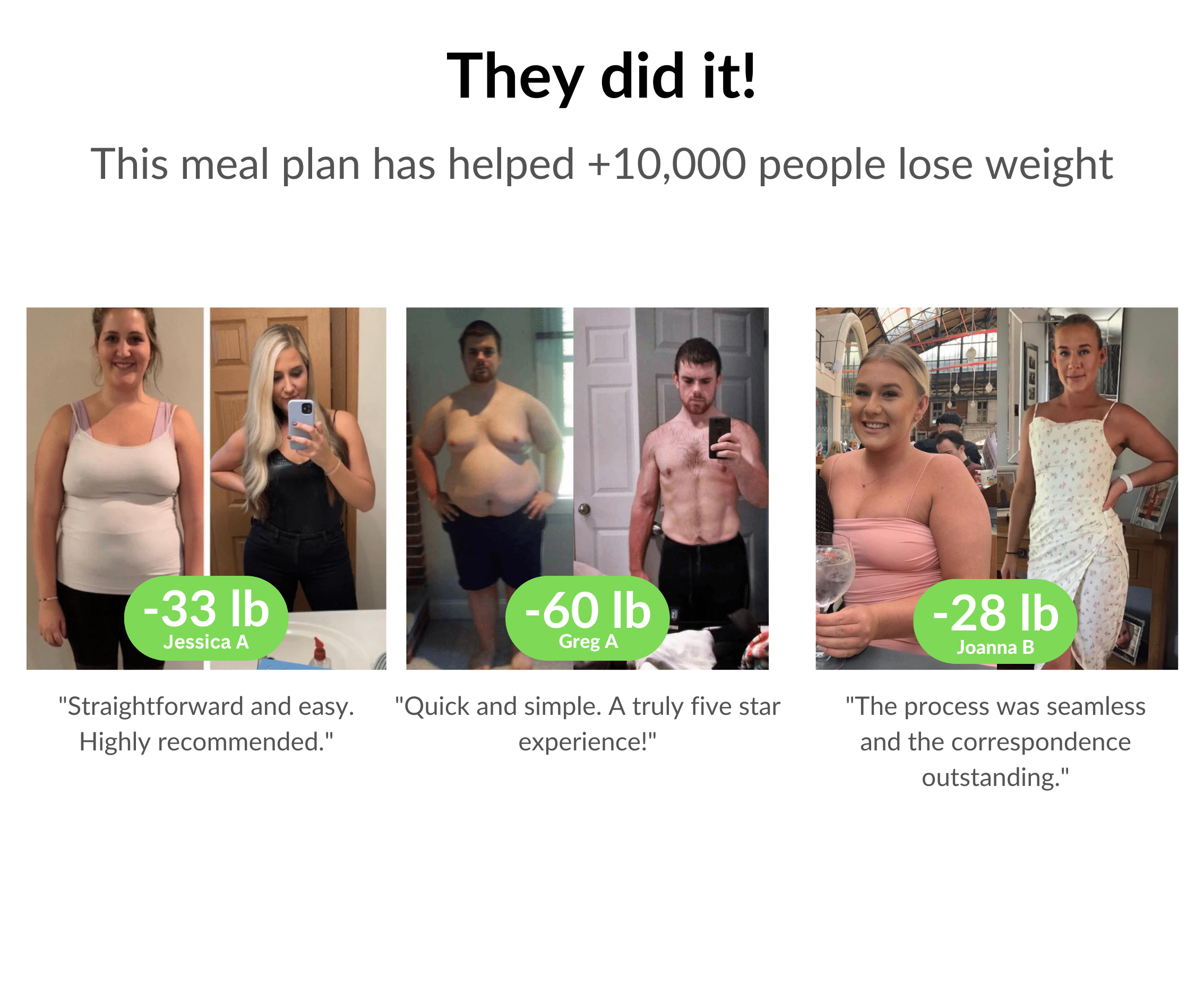 If you do not lose weight or decide that the Meal Plan isn’t right for you, just let us know and you’ll be issued a full and prompt refund, no questions asked.